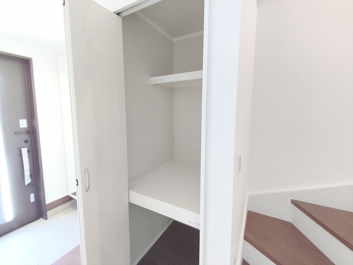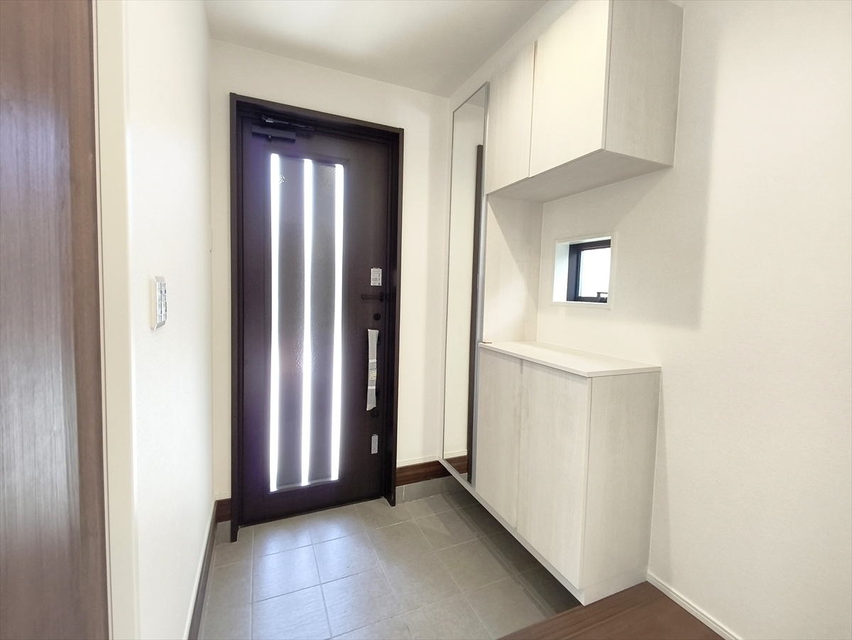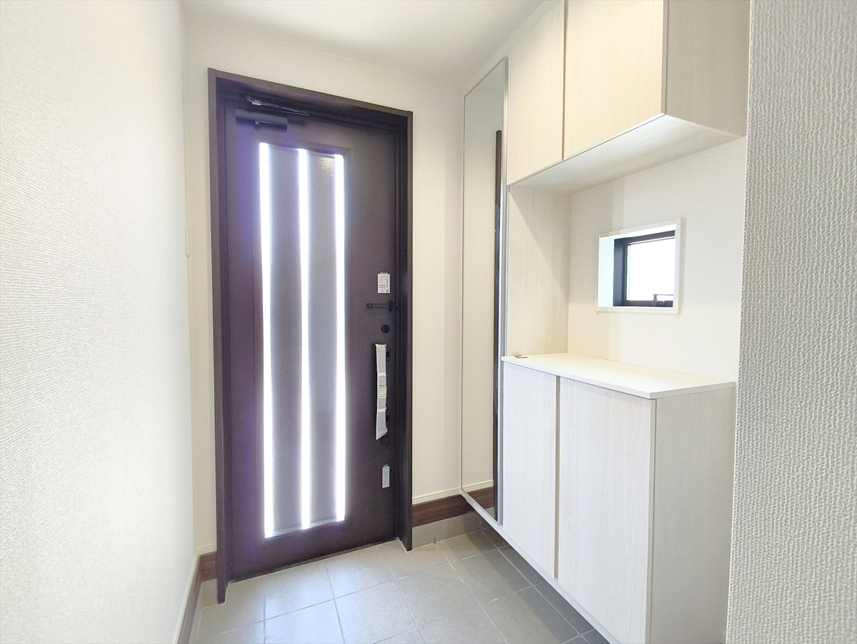 お出かけ前の身だしなみチェックが出来る姿見鏡付の玄関収納。かさばる物も収納できる優れものです。■三鷹市上連雀9 新築一戸建て■