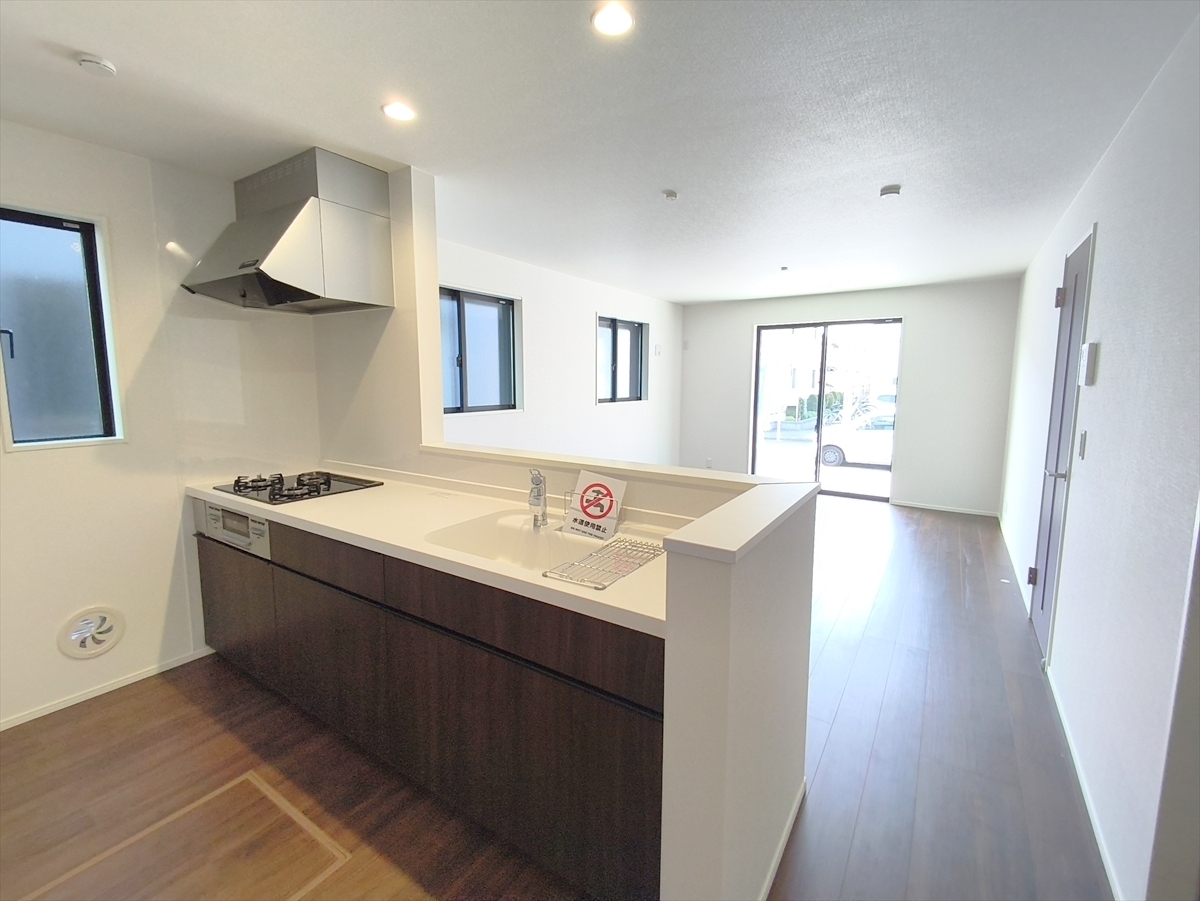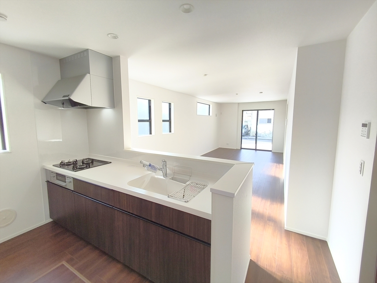 キッチンからリビング全体を見渡せるので、小さなお子様がいらしても様子を見ながら家事ができますね■三鷹市上連雀9 新築一戸建て■