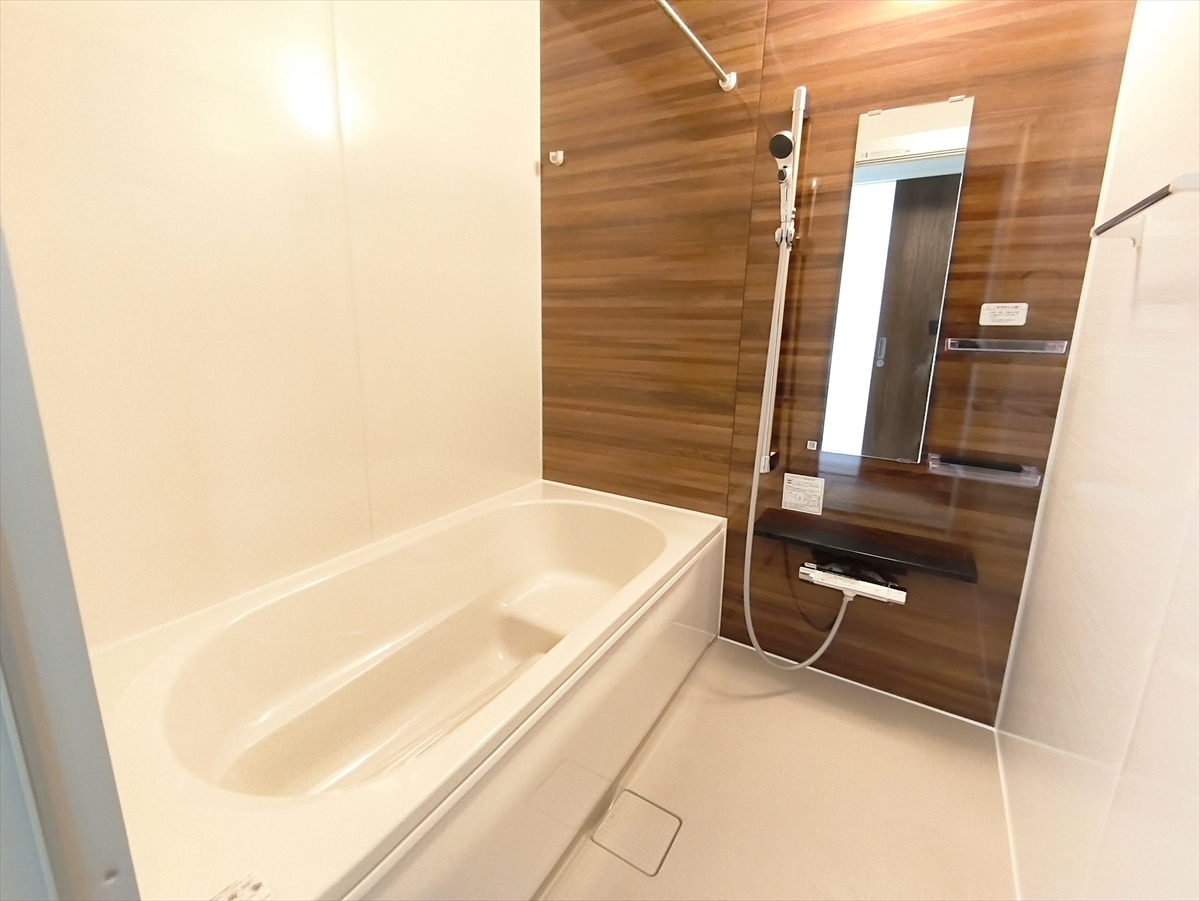 一日の疲れを癒すための心地よい浴室はゆとりあるサイズを採用。浴室乾燥機付き!汚れにくくお手入れしやすい浴室です。■三鷹市上連雀9 新築一戸建て■