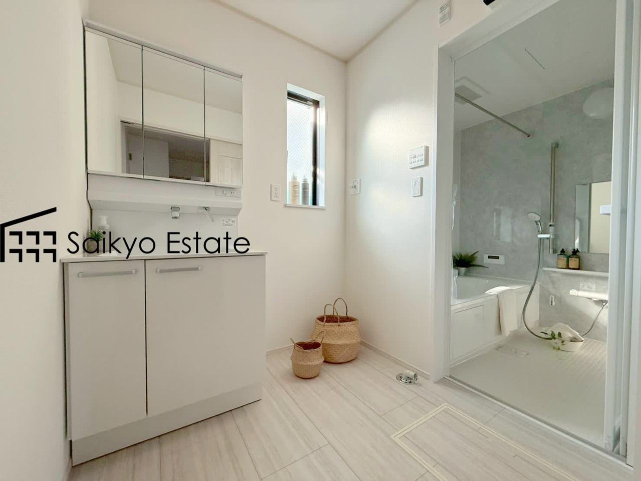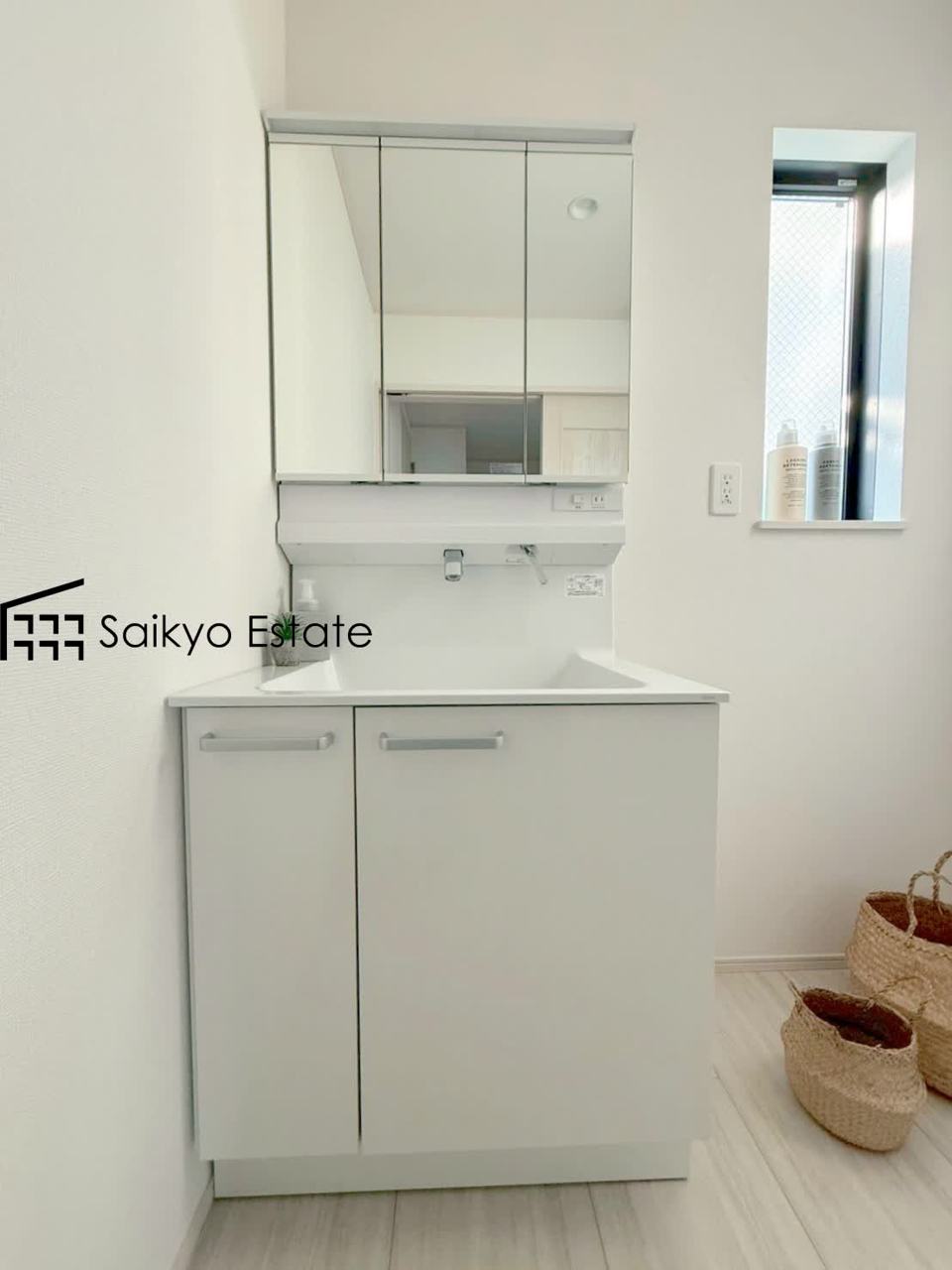 三面鏡付きの洗面化粧台を完備。収納スペースも十分ございますので、ドライヤーなどすっきりと片付きます♪