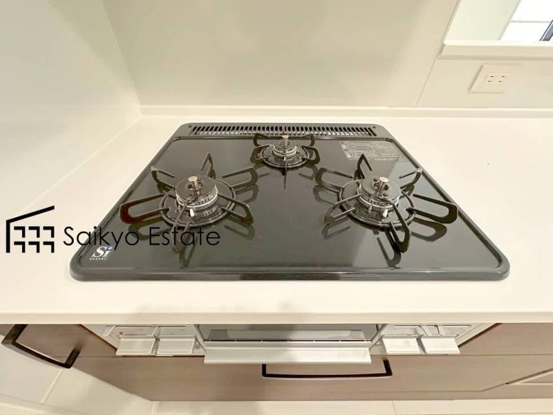 「3口ガスコンロシステム」はたくさんの料理が同時に作れて便利な上、凹凸が少ないフラットトップなのでお掃除も楽々です。