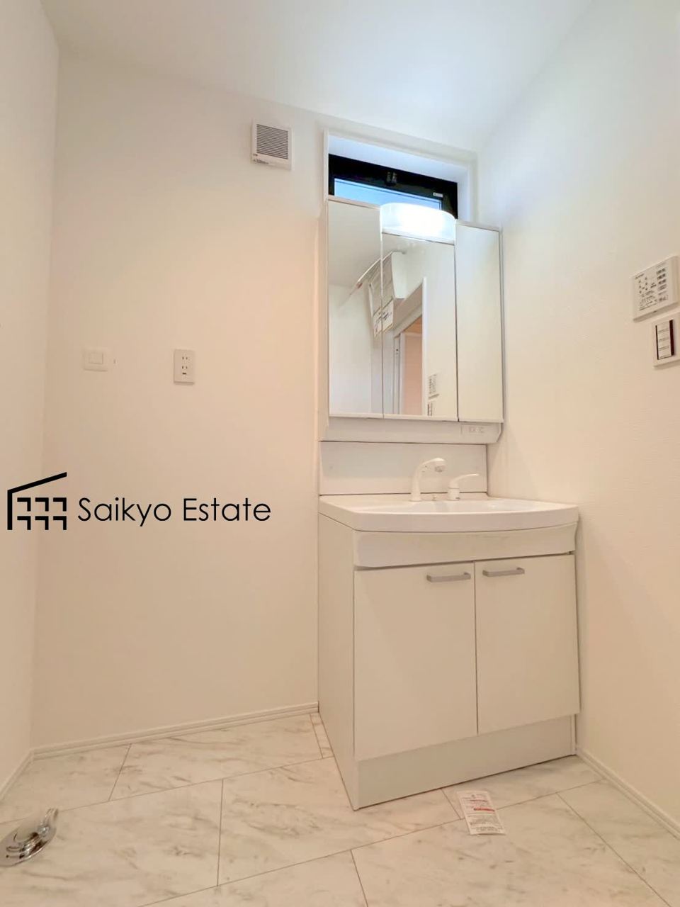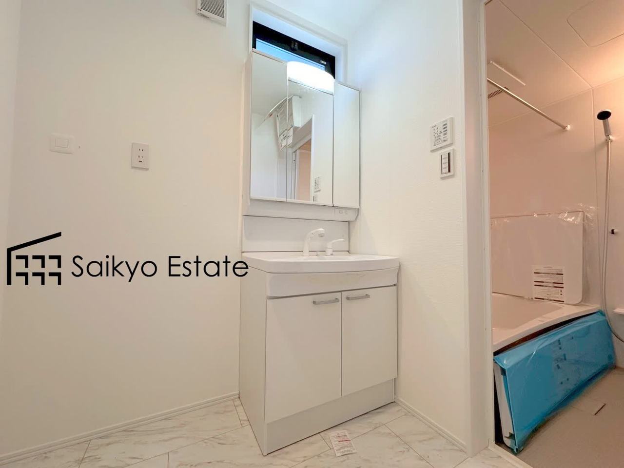 三面鏡付きの洗面化粧台を完備。収納スペースも十分ございますので、ドライヤーなどすっきりと片付きます♪