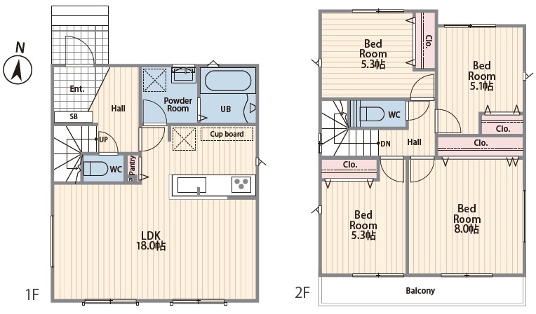 | 間取 | 4LDK (LDK18.0帖、洋室8.0帖、洋室5.3帖、洋室5.3帖、洋室5.1帖) | ||