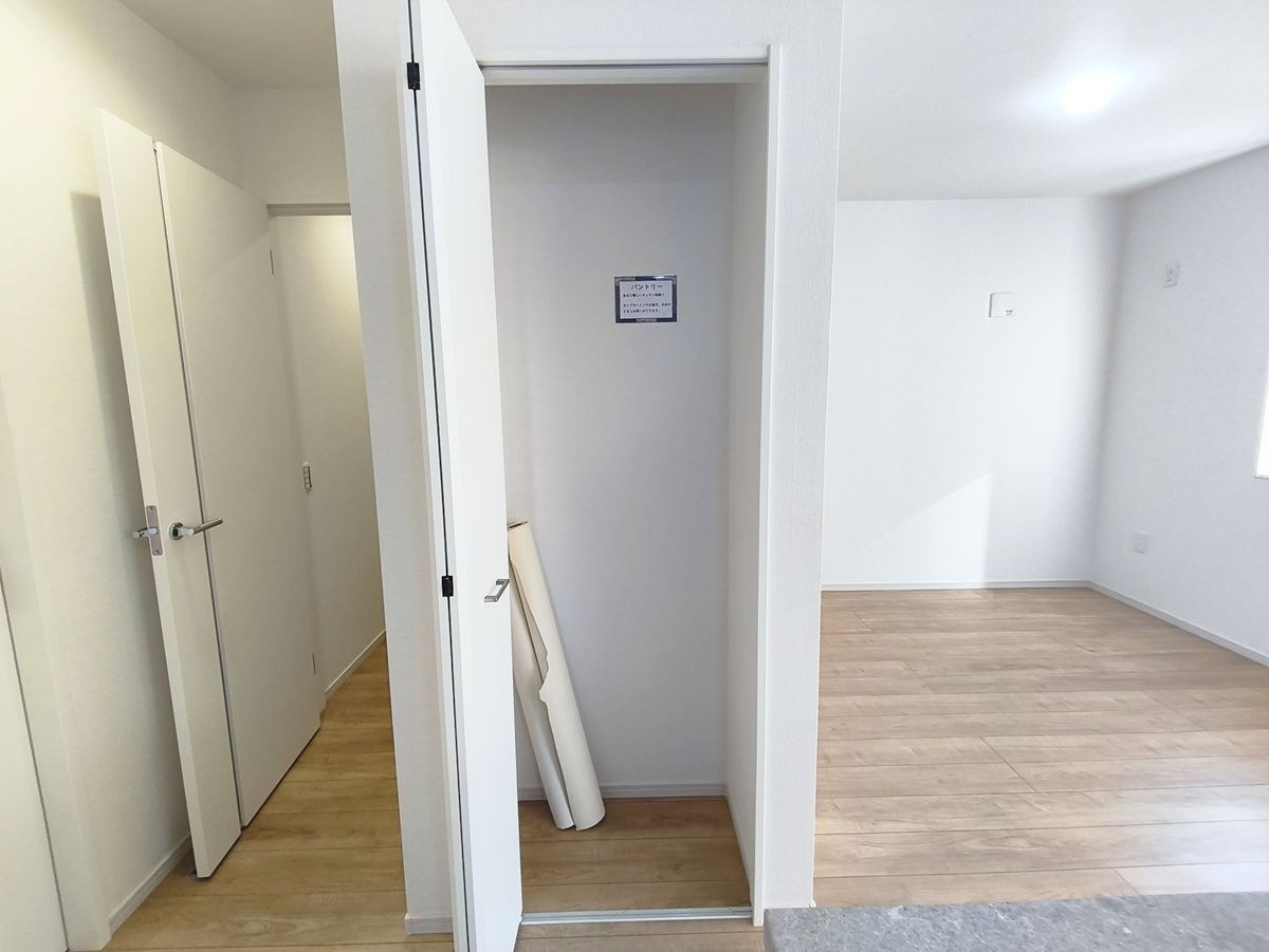 ひと目で収納物を確認できるウォークインクローゼットは、ゆとりの広さを備えた大型収納。数多くの衣類に加え、足元には引出しや衣装箱、シューズボックスなども収納することができます。 ■昭島市緑町3 新築一戸建■
