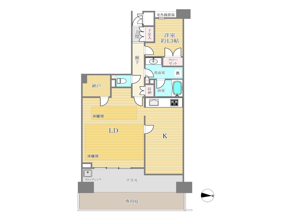 | バルコニー面積 | (テラス面積13.24m2) | ||