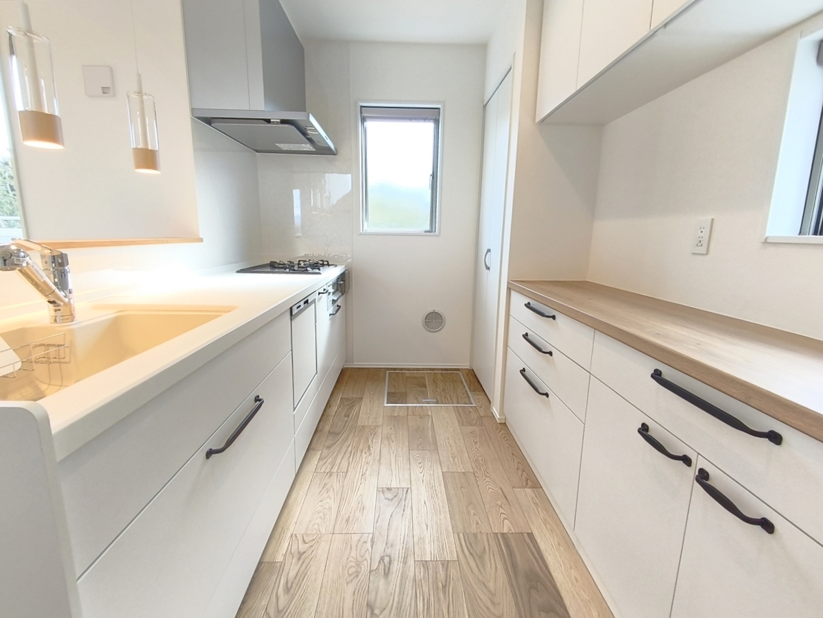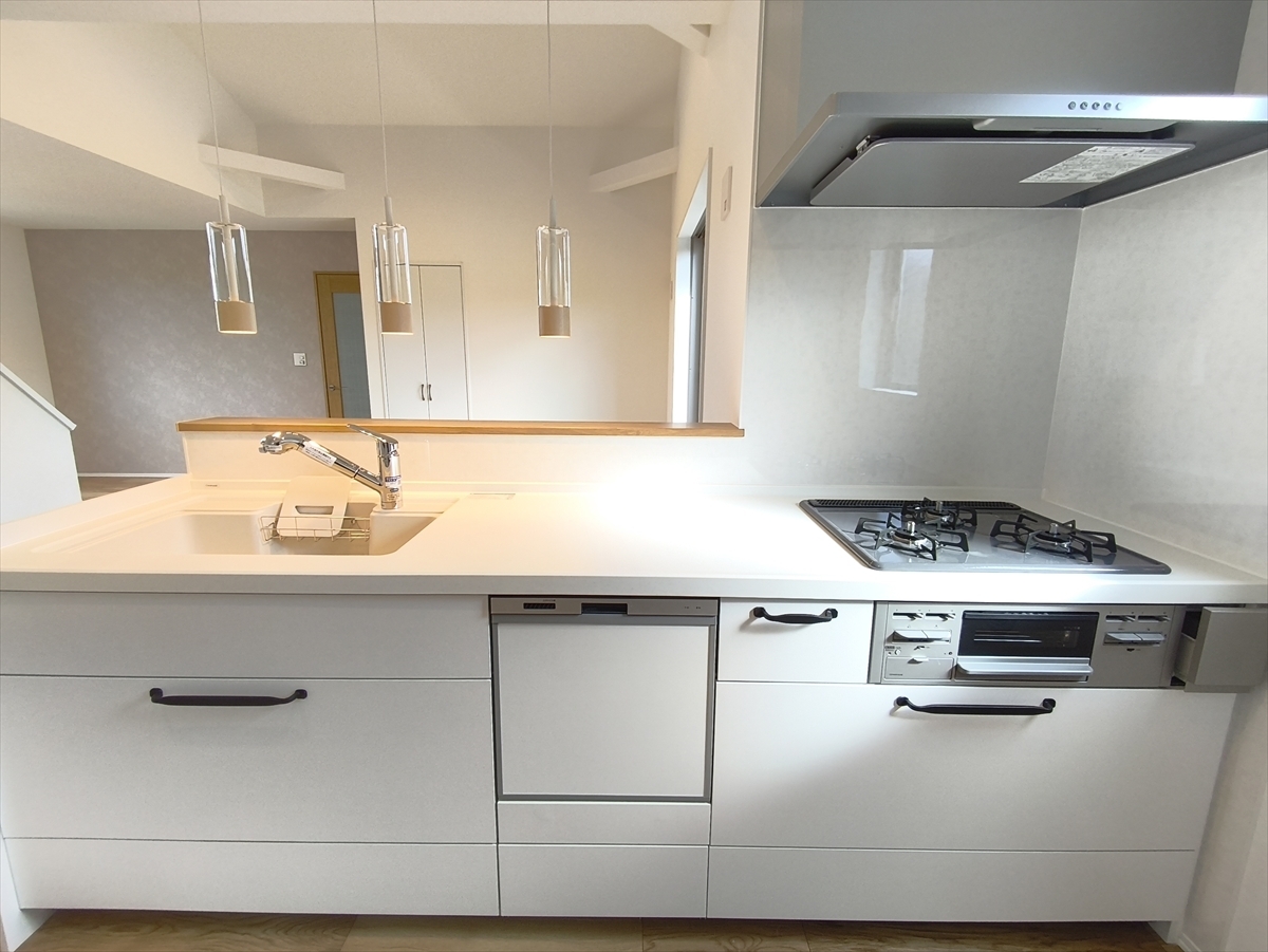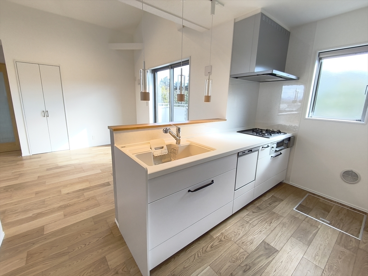 キッチンに立った位置から、リビングにいる家族に目線が届く見守りキッチン! ■八王子市東浅川町 新築一戸建て■