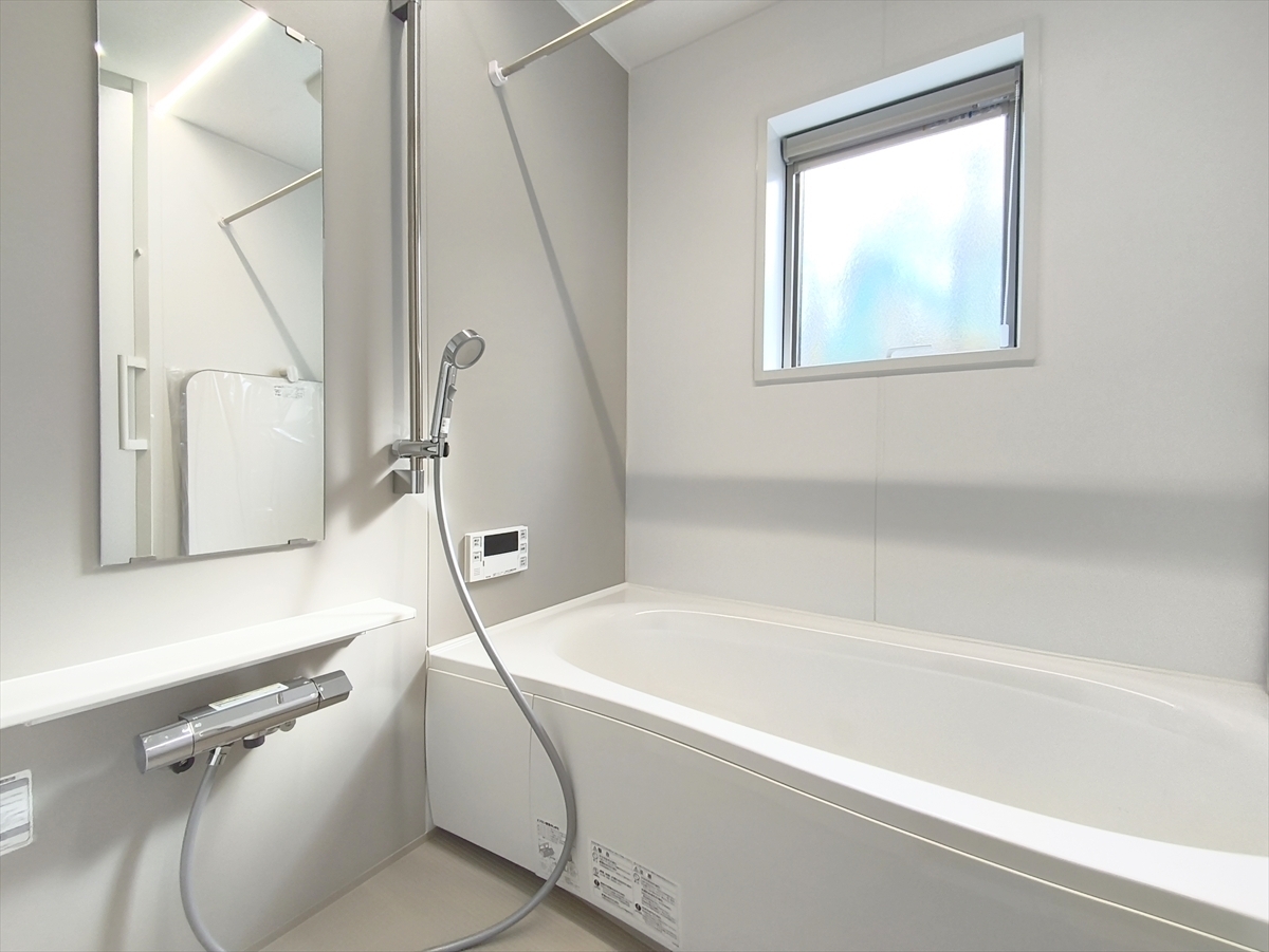 一日の疲れを癒しながら、お子様と一緒にバスタイムも楽しめる清潔感あふれる浴室です。浴室は換気・乾燥・暖房機能付きなので、雨の日のお洗濯や寒い冬でも1年中快適です。 ■八王子市東浅川町 新築一戸建て■