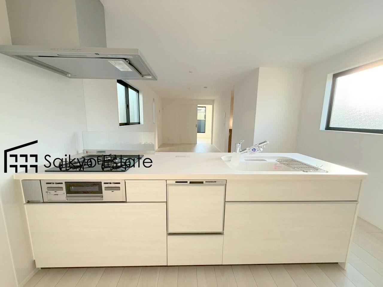 リビングにいる家族とコミュニケーションをとりながら作業が出来る人気のカウンターキッチン。お子様がリビングにいても目が届くので安心です。