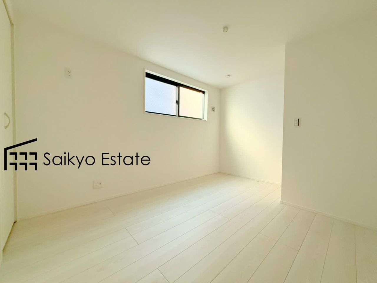 白を基調とした洋室は清潔感があり、落ち着いた空間です。木の温もりが優しいフローリングで、北欧風インテリアが似合いそうな空間です。