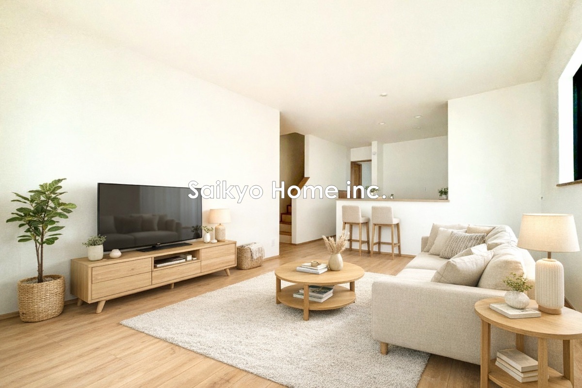 家族が集う南向きの明るいリビングは光と風の差し込む心地よい空間です。※家具等はCG加工しております。 ■狛江市中和泉5 新築一戸建■