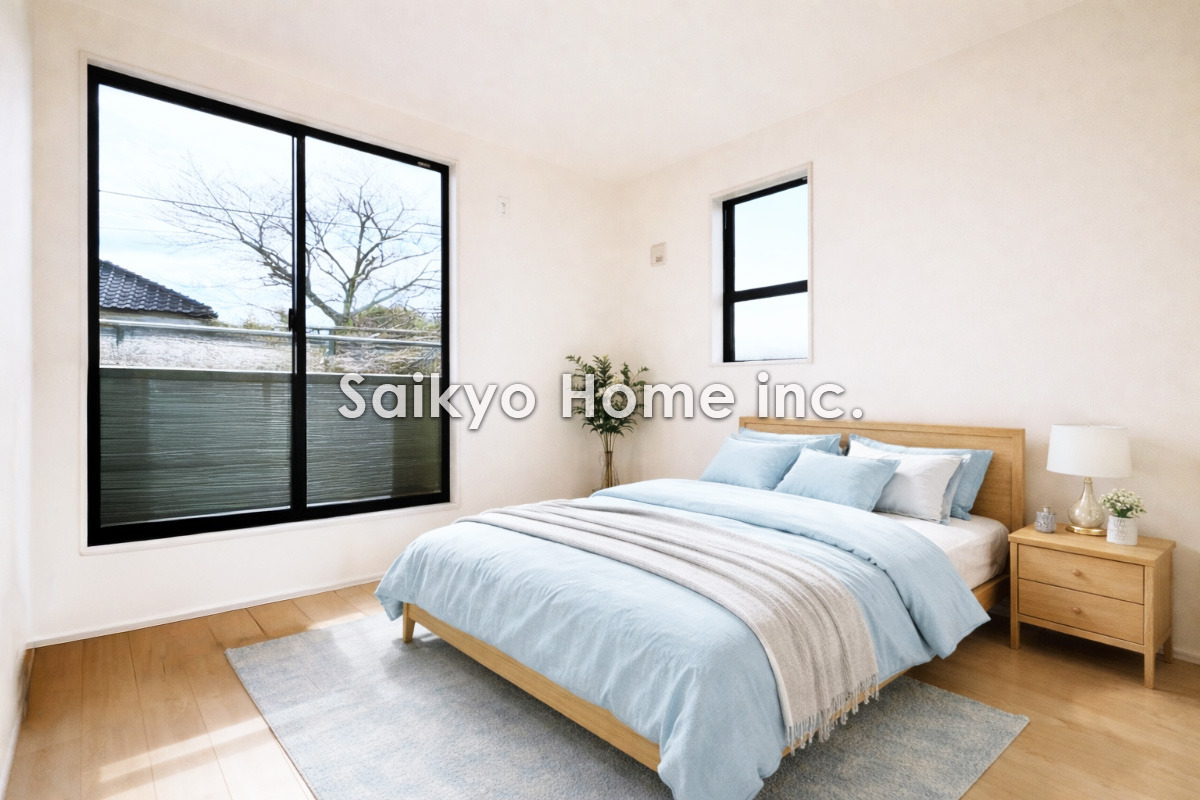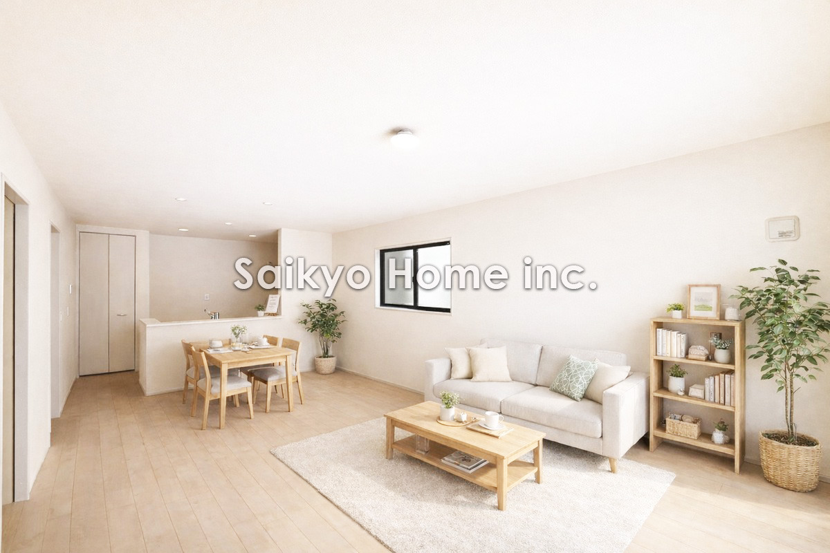 明るく解放感ある二面採光の居室には暖かく包んでくれる空間があります。お隣との空間に配慮しながら陽当たりとプライバシーに配慮しました。※家具はCG加工しております。 ■小金井市貫井南町4 新築一戸建■