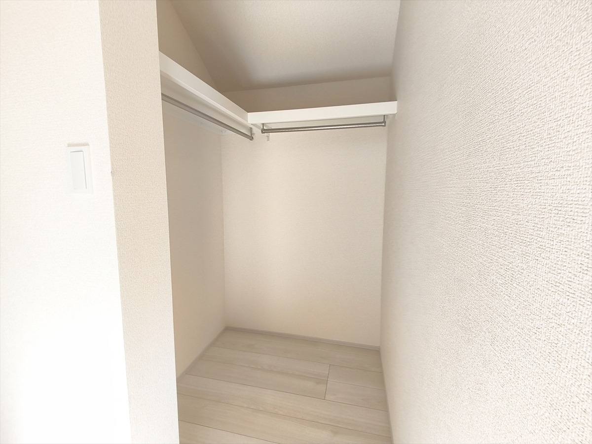 ひと目で収納物を確認できるウォークインクローゼットは、ゆとりの広さを備えた大型収納。数多くの衣類に加え、足元には引出しや衣装箱、シューズボックスなども収納することができます。 ■立川市若葉町4 新築一戸建て■