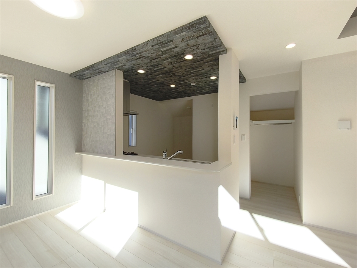 キッチンに立った位置から、リビングにいる家族に目線が届く見守りキッチン!■立川市若葉町4 新築一戸建て■