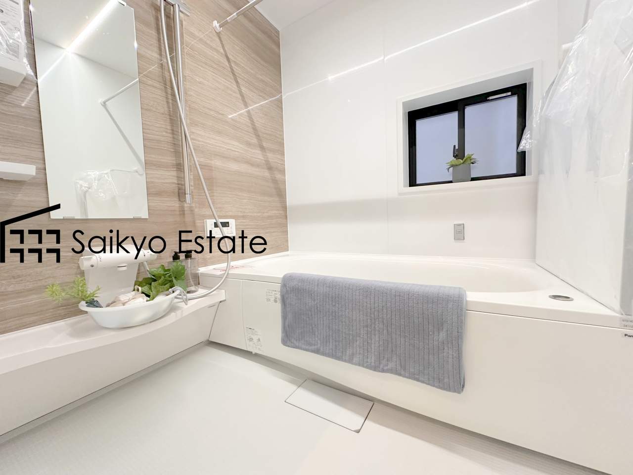 【施工例】一日の疲れを癒してくれる一坪タイプの広々バスルーム♪雨の日のお洗濯にも大活躍な浴室暖房乾燥機付きです!窓があって換気が出来るのも嬉しいですね♪