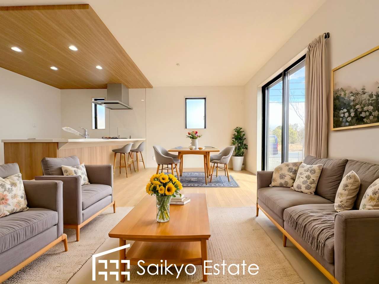 【施工例】広々としたLDKは家具の配置など楽しめます!ダイニングテーブルとソファーを置いても余裕の広さです!