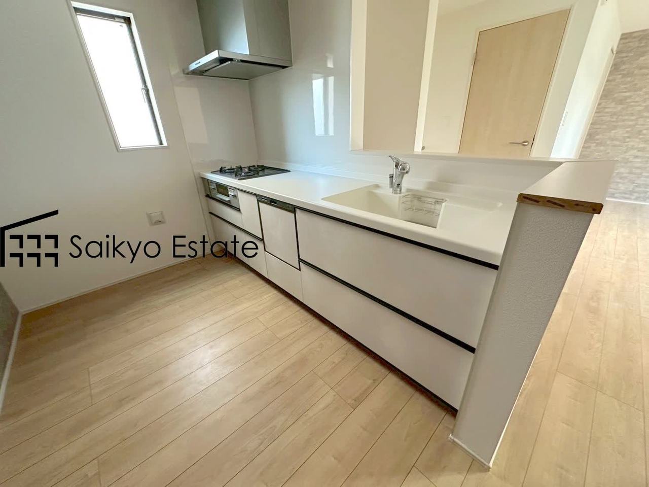 リビングにいる家族とコミュニケーションをとりながら作業が出来る人気のカウンターキッチン。お子様がリビングにいても目が届くので安心です。