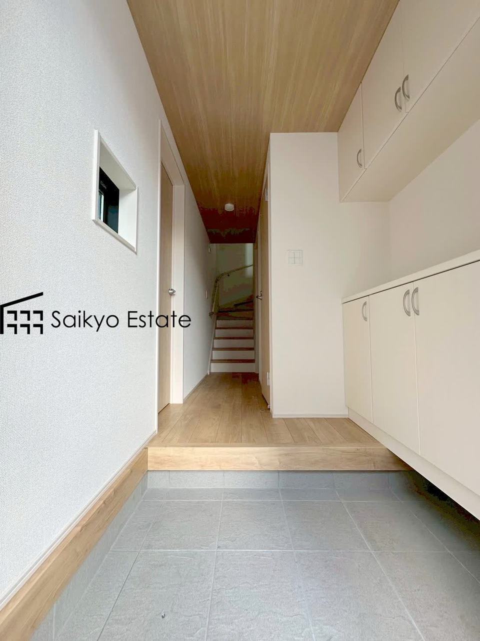 玄関には収納力に優れたシューズボックスがございますので、ご家族みんなの靴が十分入ります!小窓があって明るく換気ができるのも嬉しいですね。