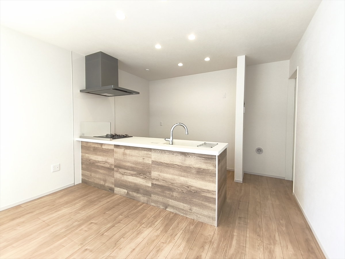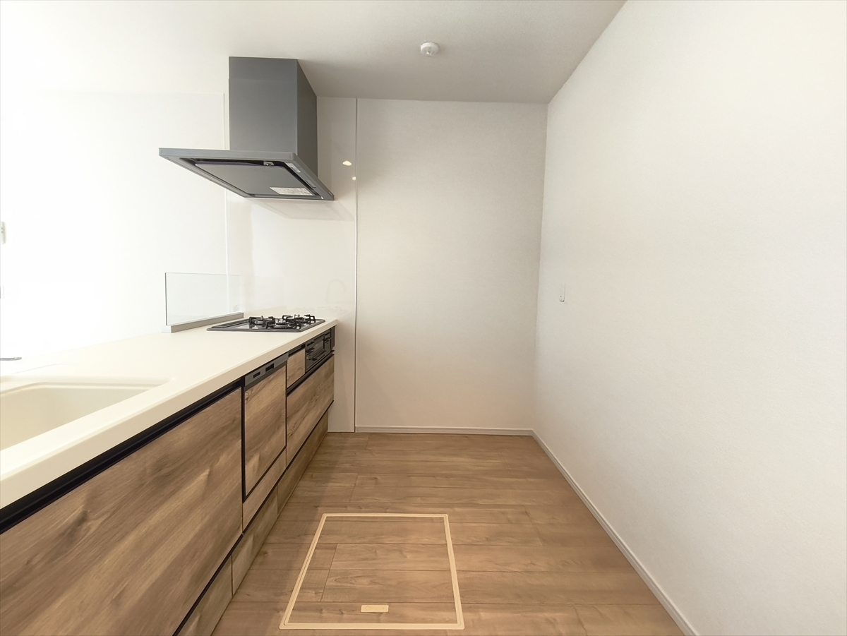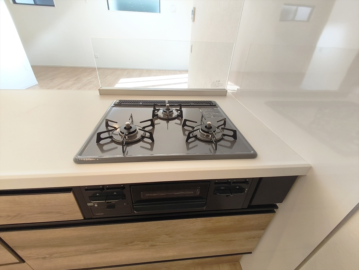 食器洗浄乾燥機、ビルトイン浄水器が装備された対面式カウンターキッチン。リビングが見渡せる設計は、小さなお子様がいるご家庭でも料理をしながら様子が伺える安心設計■国立市西2丁目 新築戸建て■