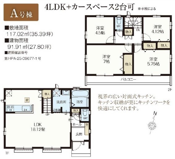 | 間取 | 4LDK (LDK18.12帖、洋室7帖、洋室5.75帖、洋室4.5帖、洋室4.12帖) | ||