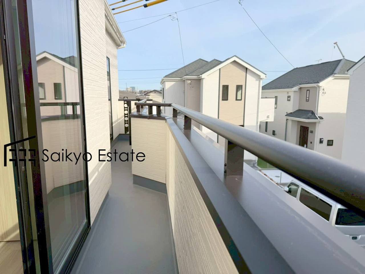 2部屋から出入りが出来る続きバルコニーは家事動線が良く、沢山の洗濯物やお布団がいっぺんに干せます!南向きで陽当たりも良好です♪(G号棟)