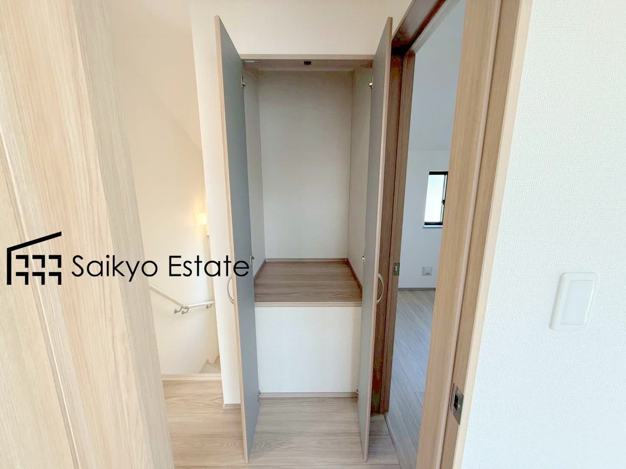 2階ホール部分には階段上を利用した収納スペースがございます。日用品や使用頻度の低い物などの収納として使える便利な空間です。(G号棟)