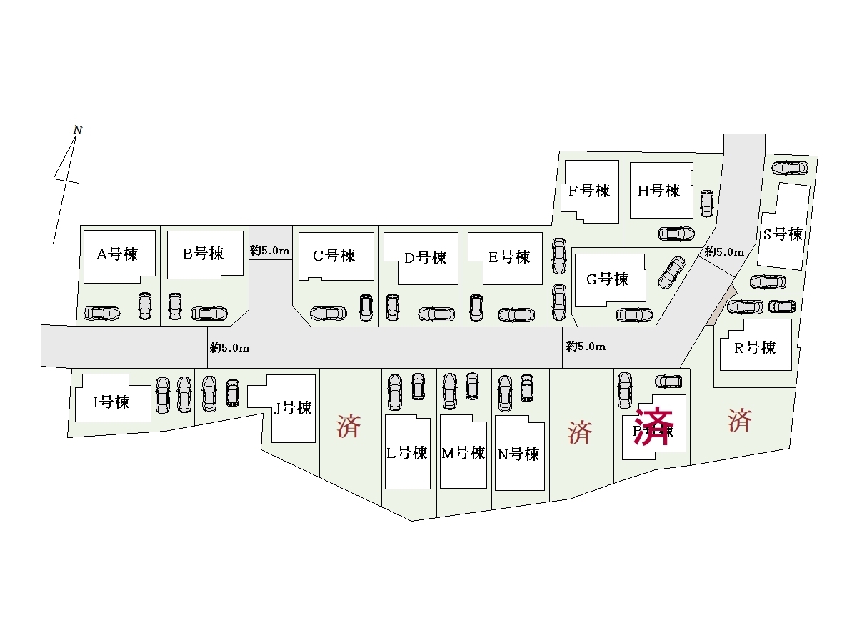 開発道路内は5mの幅員があり、お車の切り替えしも出来ますので、駐車もスムーズに行えます!駐車が少し苦手なママさんでも安心ですね♪