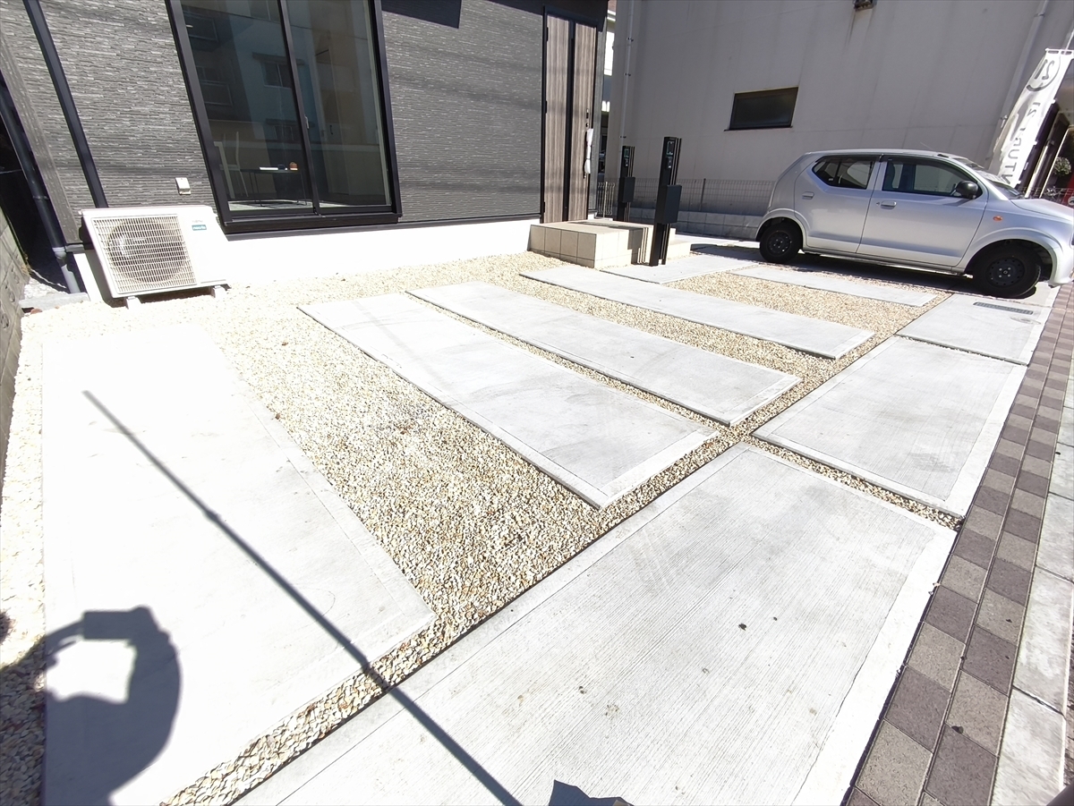 カースペースはコンクリート仕上げ。雨の日でも足元を気にすることなく駐車できます。 ■八王子市台町1丁目 新築戸建て■