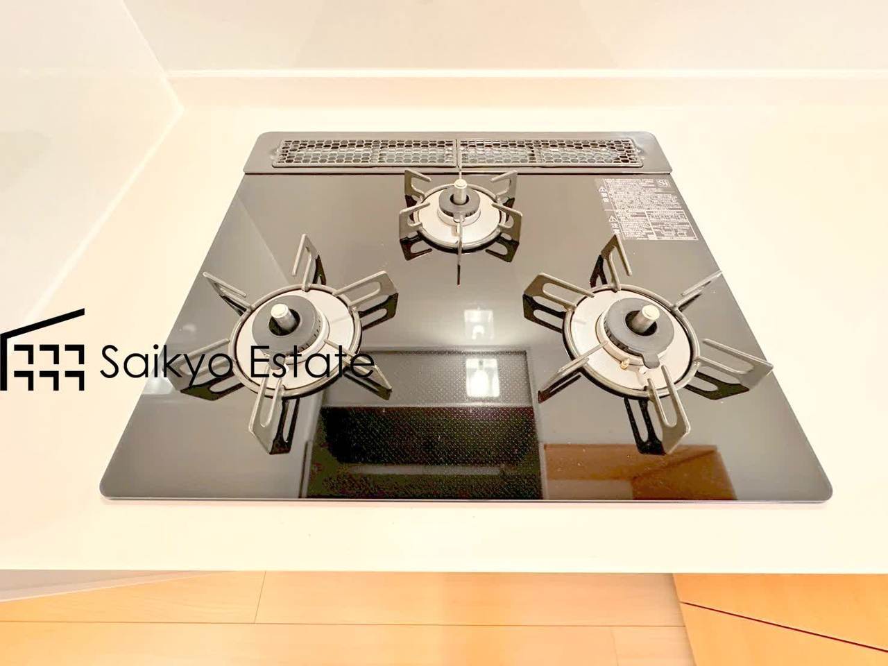 【施工例】「3口ガスコンロシステム」はたくさんの料理が同時に作れて便利な上、凹凸が少ないフラットトップなのでお掃除も楽々です。