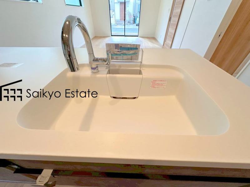 リビングにいる家族とコミュニケーションをとりながら作業が出来る人気のカウンターキッチン。お子様がリビングにいても目が届くので安心です。