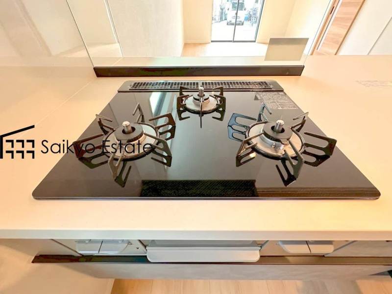 「3口ガスコンロシステム」はたくさんの料理が同時に作れて便利な上、凹凸が少ないフラットトップなのでお掃除も楽々です。