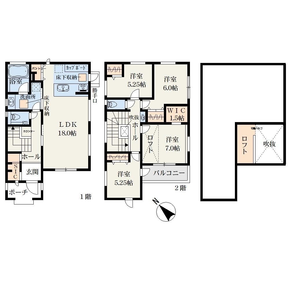 LDK広々18帖!ロフト付きの大型4LDK!WICやSIC、パントリーなど豊富な収納スペース!階段は幅の広いワイド階段を採用!