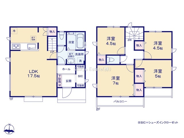 | 間取 | 4LDK+SIC (LDK17.5帖、洋室7帖、洋室5帖、洋室4.5帖、洋室4.5帖) | ||
