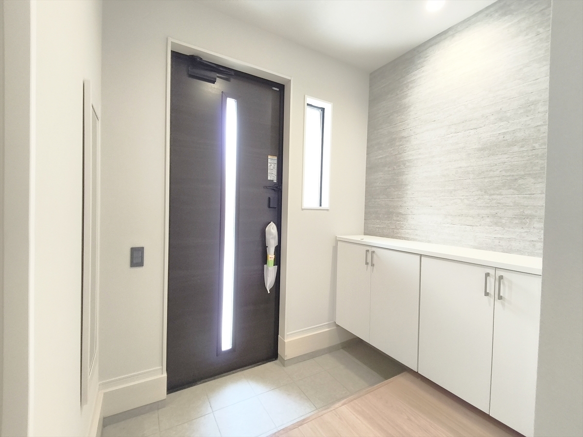 お家に出会う人々を出迎える玄関だからこそ、広々清潔感あふれる空間にしたいもの。採光・通風にも配慮された開口部を設ける事で、毎日明るい空間をキープします。 ■八王子市緑町 新築一戸建て■