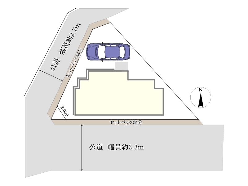 | 権利種類 | 所有権 | 接道 | 北西側2.7M公道に接道 南側3.3M公道に接道 |