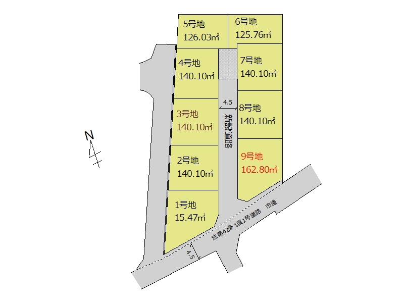 | 接道 | 南側4.5M道路に接道 北側4.5M道路に接道 |