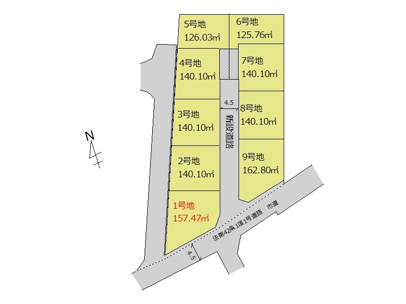 | 接道 | 南側4.5M道路に接道 北側4.5M道路に接道 |
