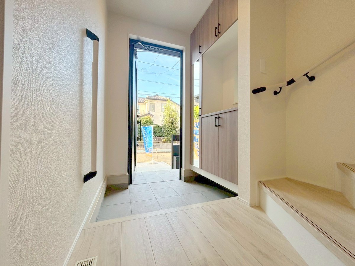 玄関は清潔感のある空間にしたいもの。ご家族が多いご家庭にはとても便利なたっぷり収納できるシューズボックス付きです。 ■日野市東平山2 新築一戸建て■