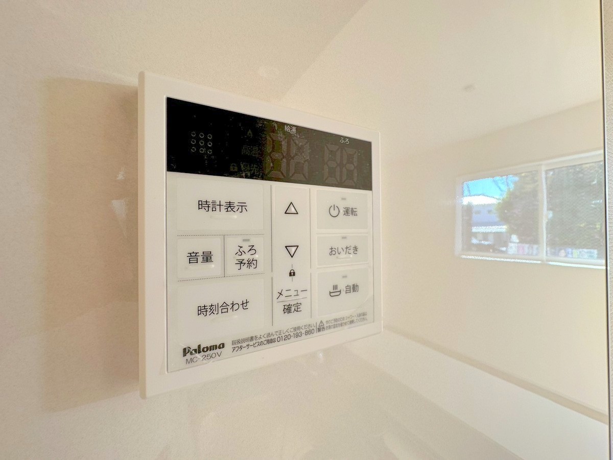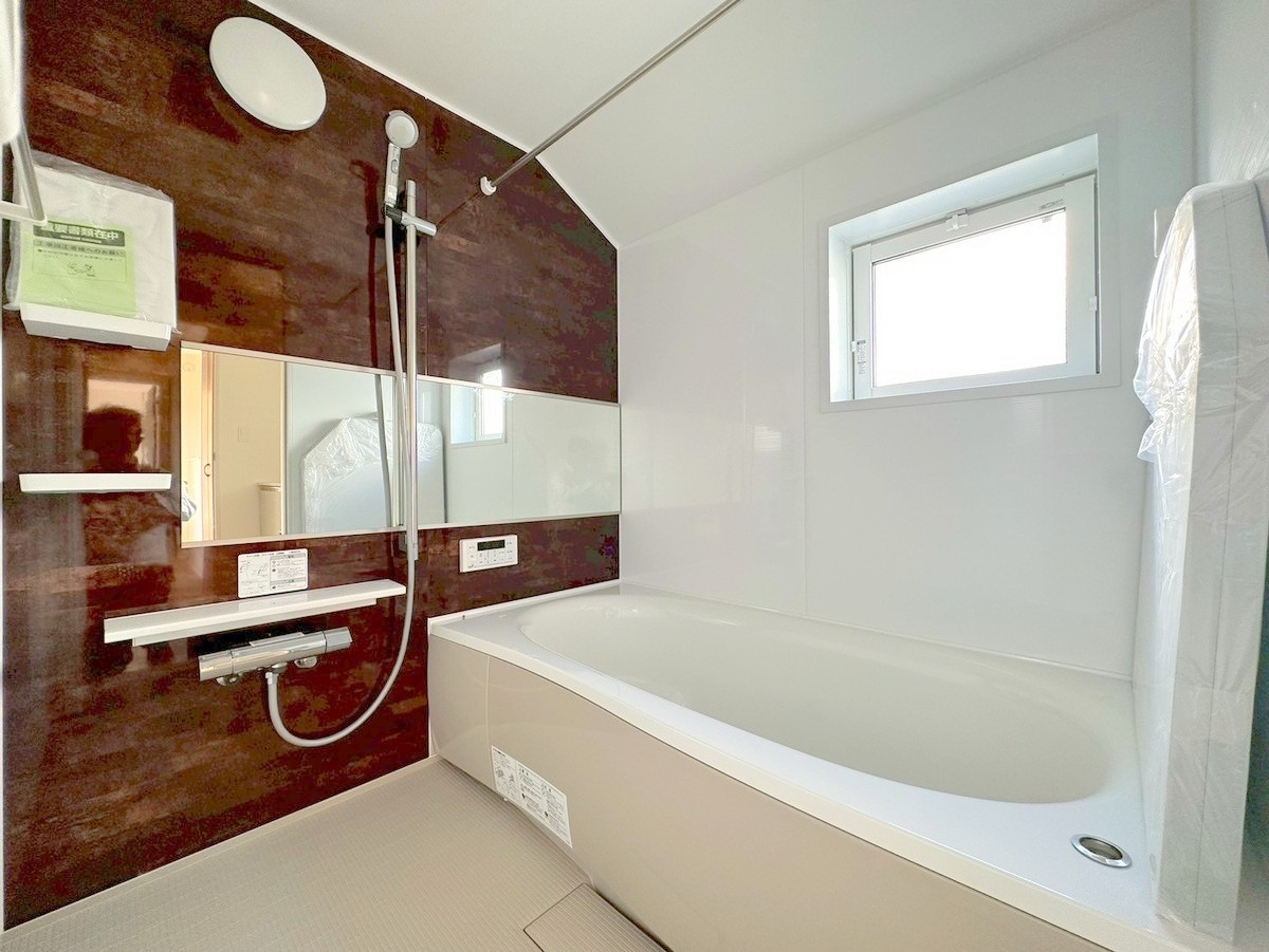 一日の疲れを癒しながら、お子様と一緒にバスタイムも楽しめる清潔感あふれる浴室です。浴室は換気・乾燥・暖房機能付きなので、雨の日のお洗濯や寒い冬でも1年中快適です。 ■稲城市東長沼 新築一戸建て■