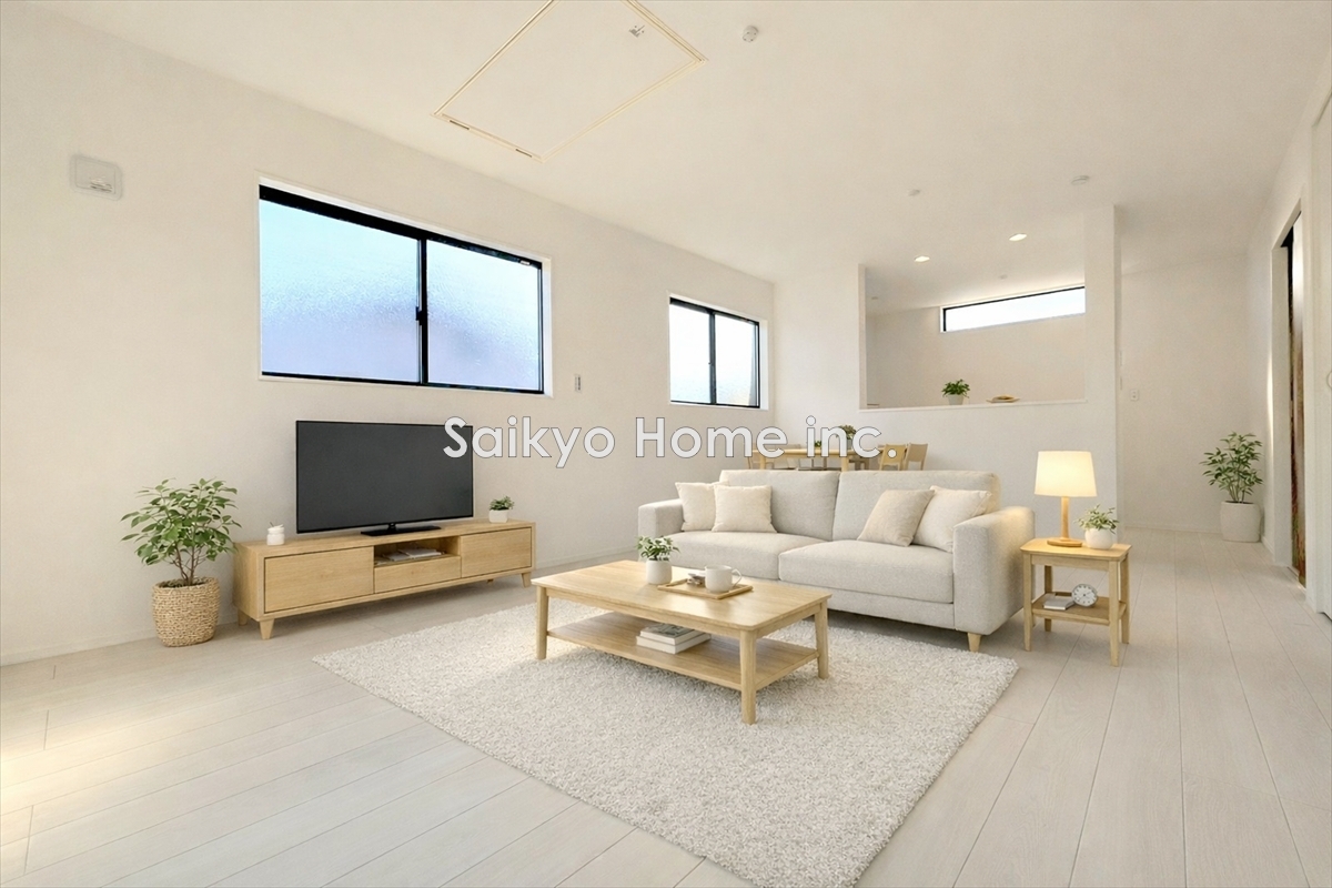 2階LDKは両面バルコニーからの自然光で満たされ、明るく開放感溢れる家族の寛ぎの場になります!豊富な収納も魅力的!※家具等はCG加工しております。■調布市国領町7 新築一戸建て■
