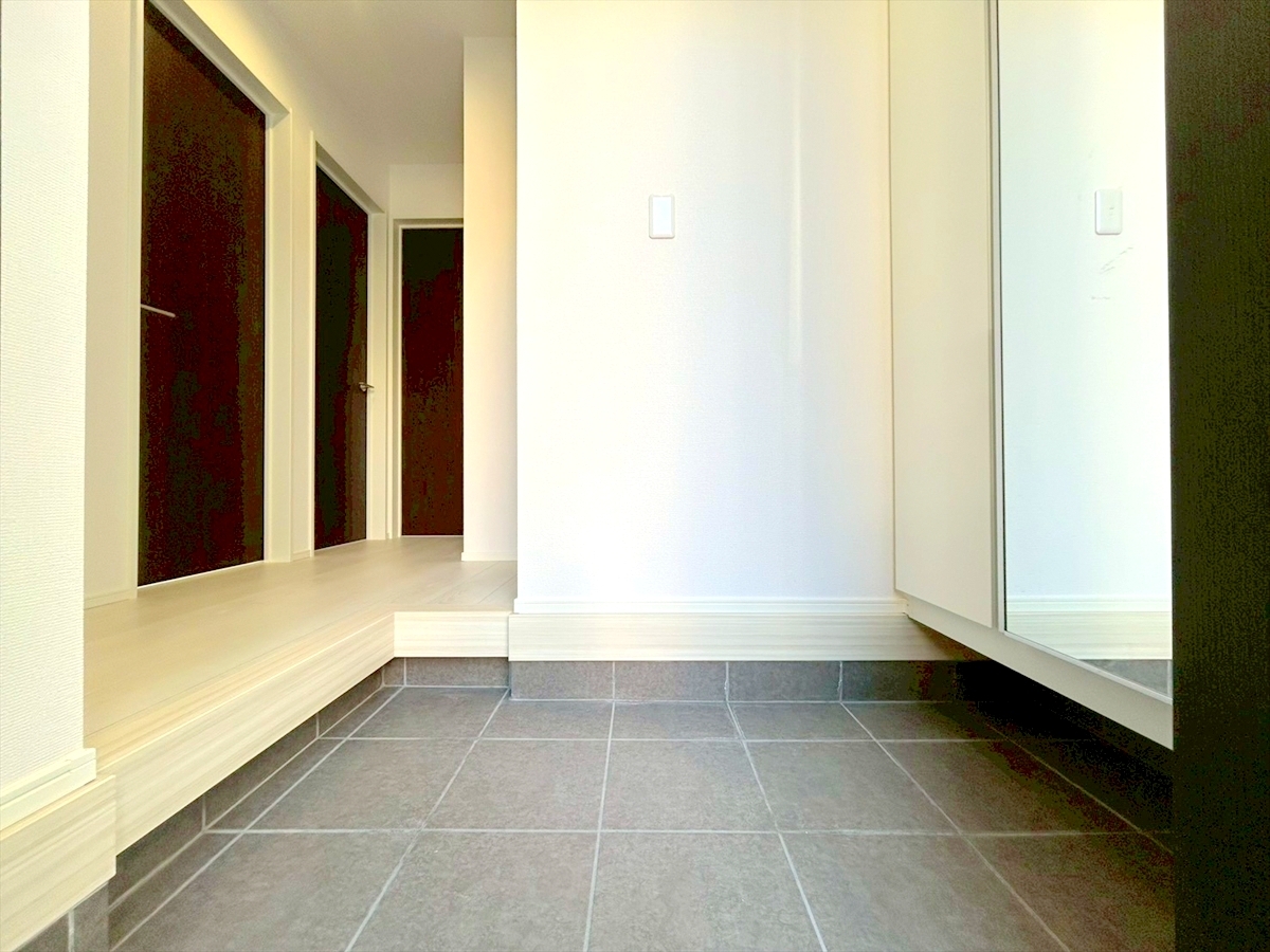 広く開放的な玄関には大きいサイズの靴箱が設置。ご家族みなさまの靴の収納も安心です。ただいま。おかえり。の声が聞こえる、そんな玄関です。■調布市国領町7 新築一戸建て■
