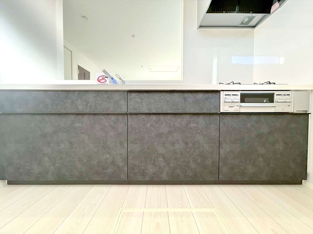 高級感漂うシステムキッチン。収納力豊富で見せるキッチンの実現が可能に。いつもキレイにしておきたくなるキッチンです。■調布市国領町7 新築一戸建て■