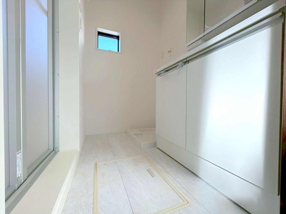 シンプルなデザインの洗面化粧台は使いやすく、お掃除も楽です。鏡の裏はすべて収納になっているので、ドライヤーなどすっきりと片付きます。■調布市国領町7 新築一戸建て■