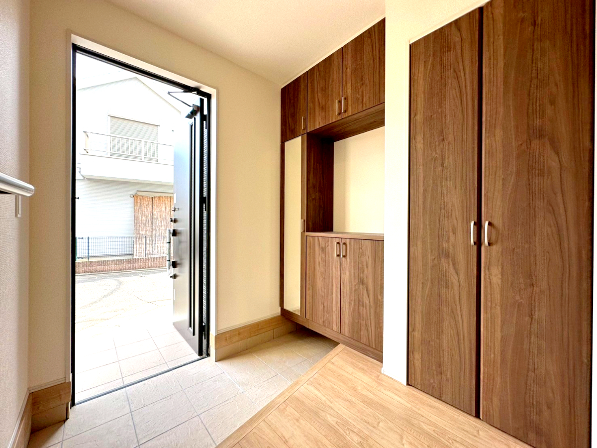 ご家族のお帰りや、大切なお客様を迎える玄関は清潔感あふれる空間にしたいもの。採光や通風にも配慮された明るい空間です。■稲城市大丸 新築一戸建て■