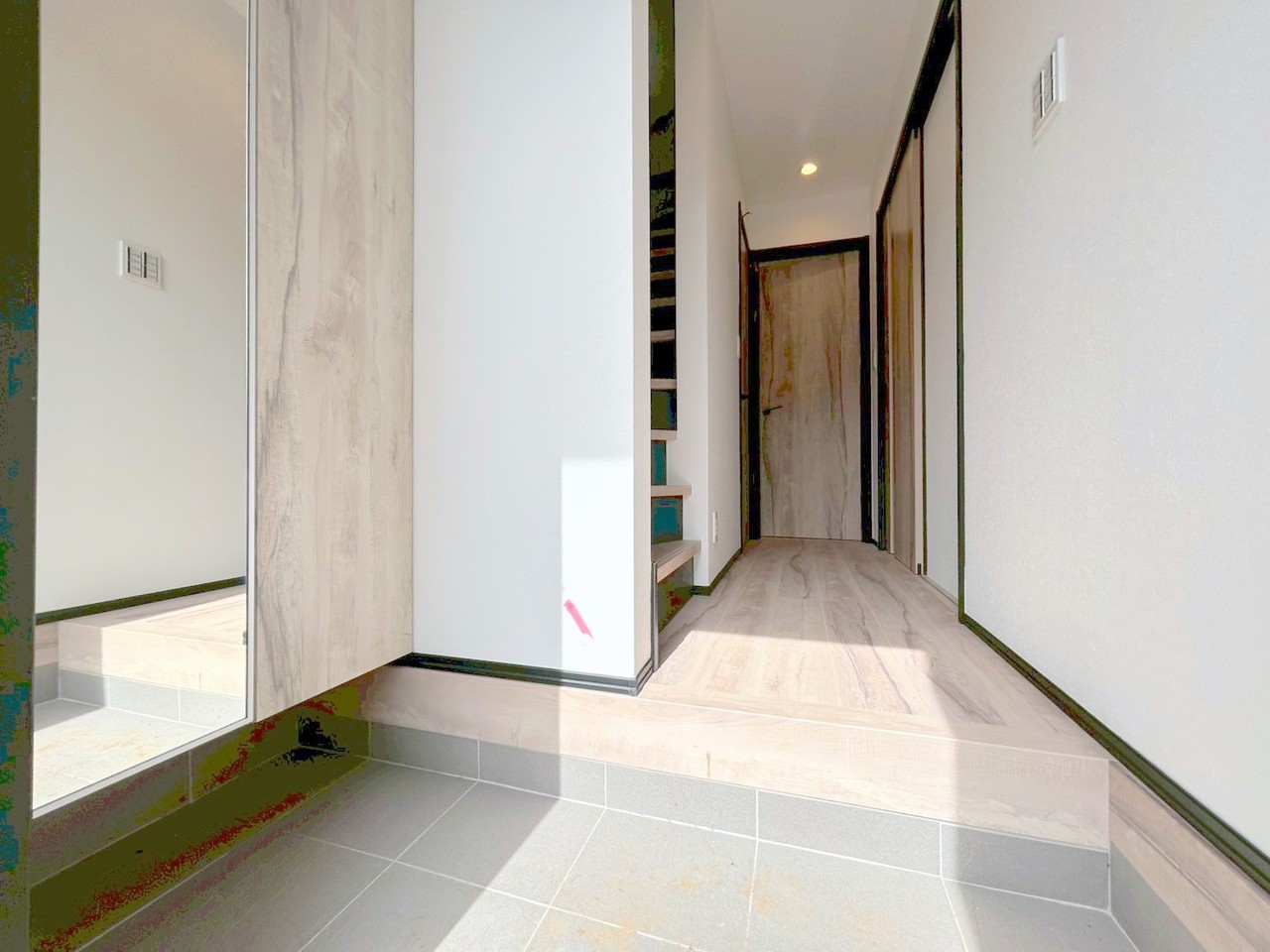 お家に出会う人々を出迎える玄関先だからこそ、広々清潔感あふれる空間にしたいもの。毎日明るい空間をキープします。 ■調布市深大寺東町6 新築一戸建て■