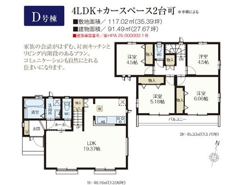 | 建築確認番号 | 第HPA-25-000000-1号他 | 駐車スペース | 2台可(カースペース) |