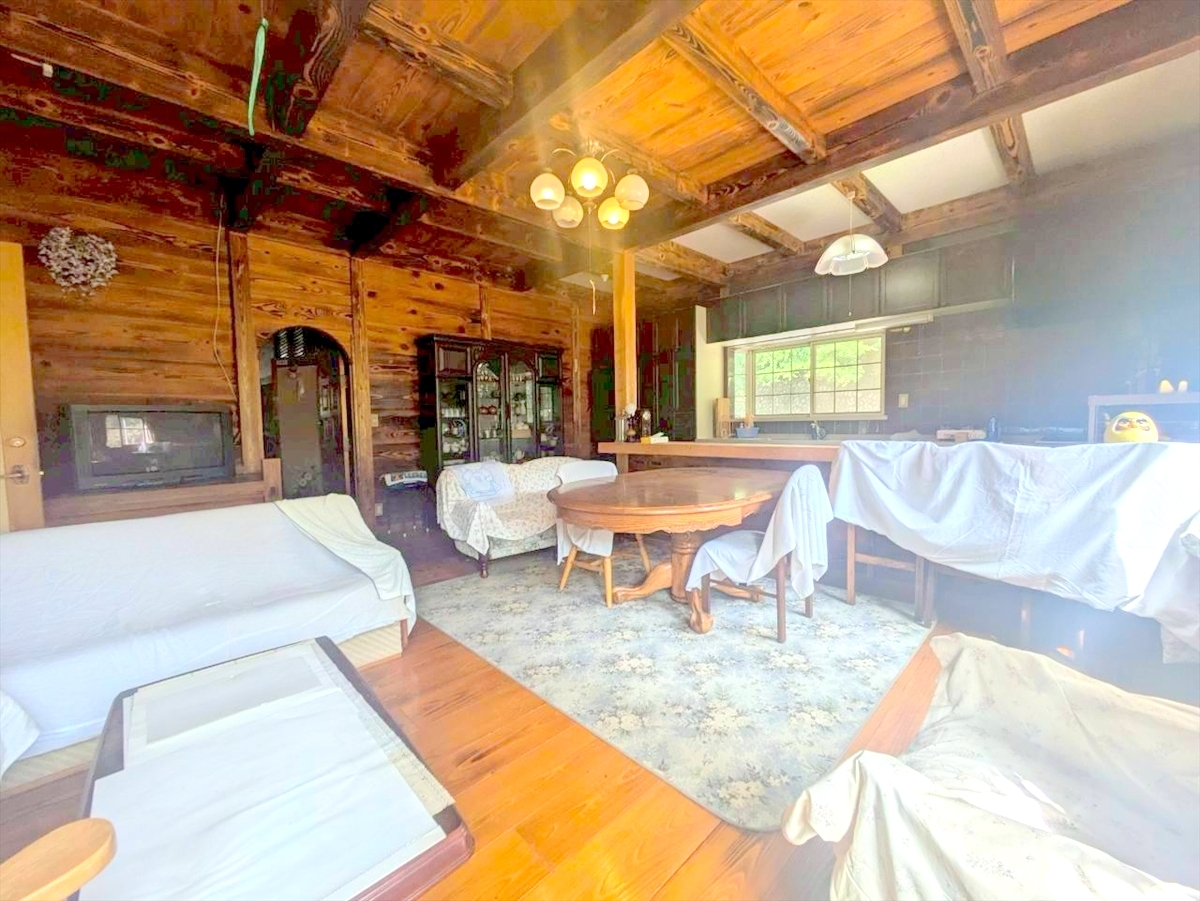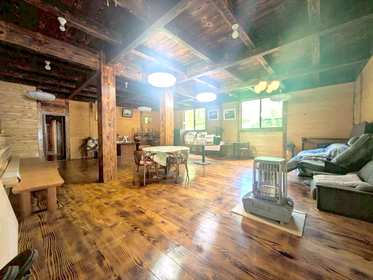 38帖超の大型リビングは家族と過ごす寛ぎ空間。大きな窓からたっぷりの陽光が降り注ぎます。■西多摩郡檜原村 中古戸建■