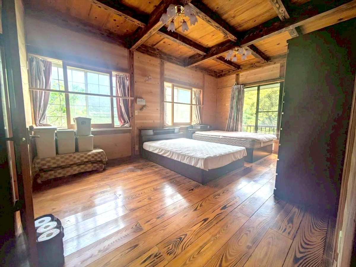 明るく開放感のある洋室。昼間は豊かな陽光が心地よく、夜はゆったりと落ち着いた空間に。■西多摩郡檜原村 中古戸建■