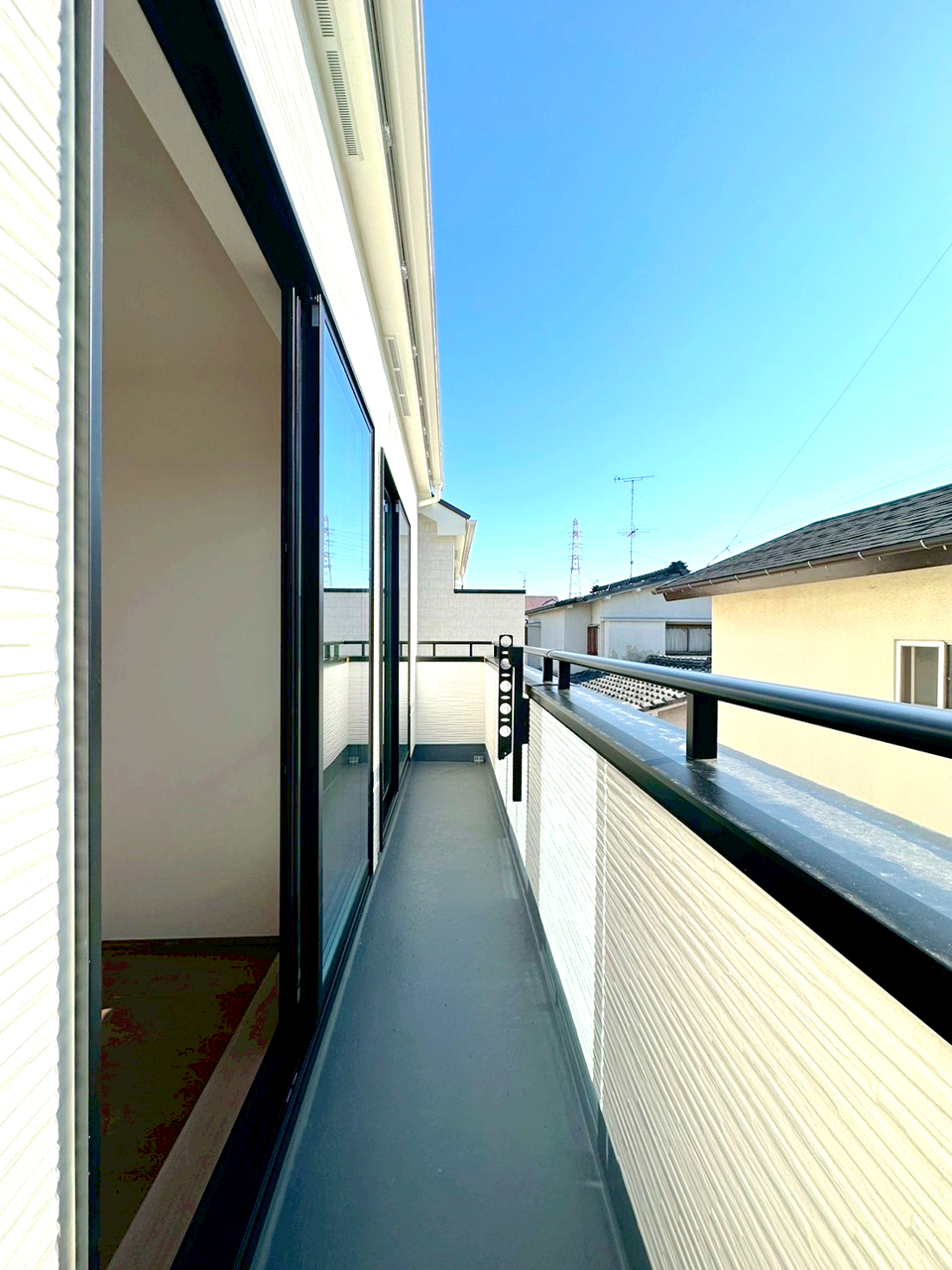たっぷりの陽光と心地よい風が舞い込むバルコニー。たくさんのお洗濯物も一気に片付きます!■府中市北山町2 新築一戸建て■