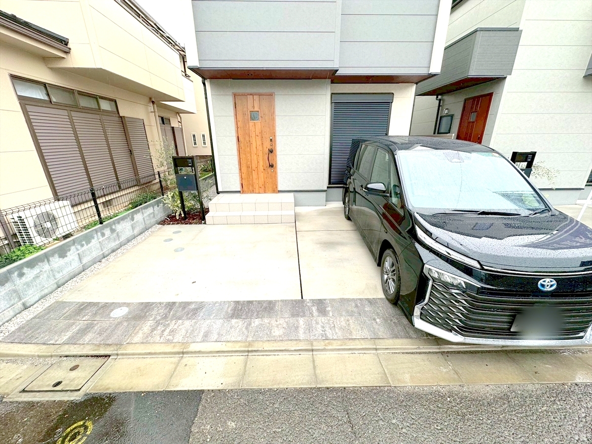 カースペースはコンクリート仕上げ。雨の日も足元は気になりません!■調布市富士見町2 新築一戸建て■