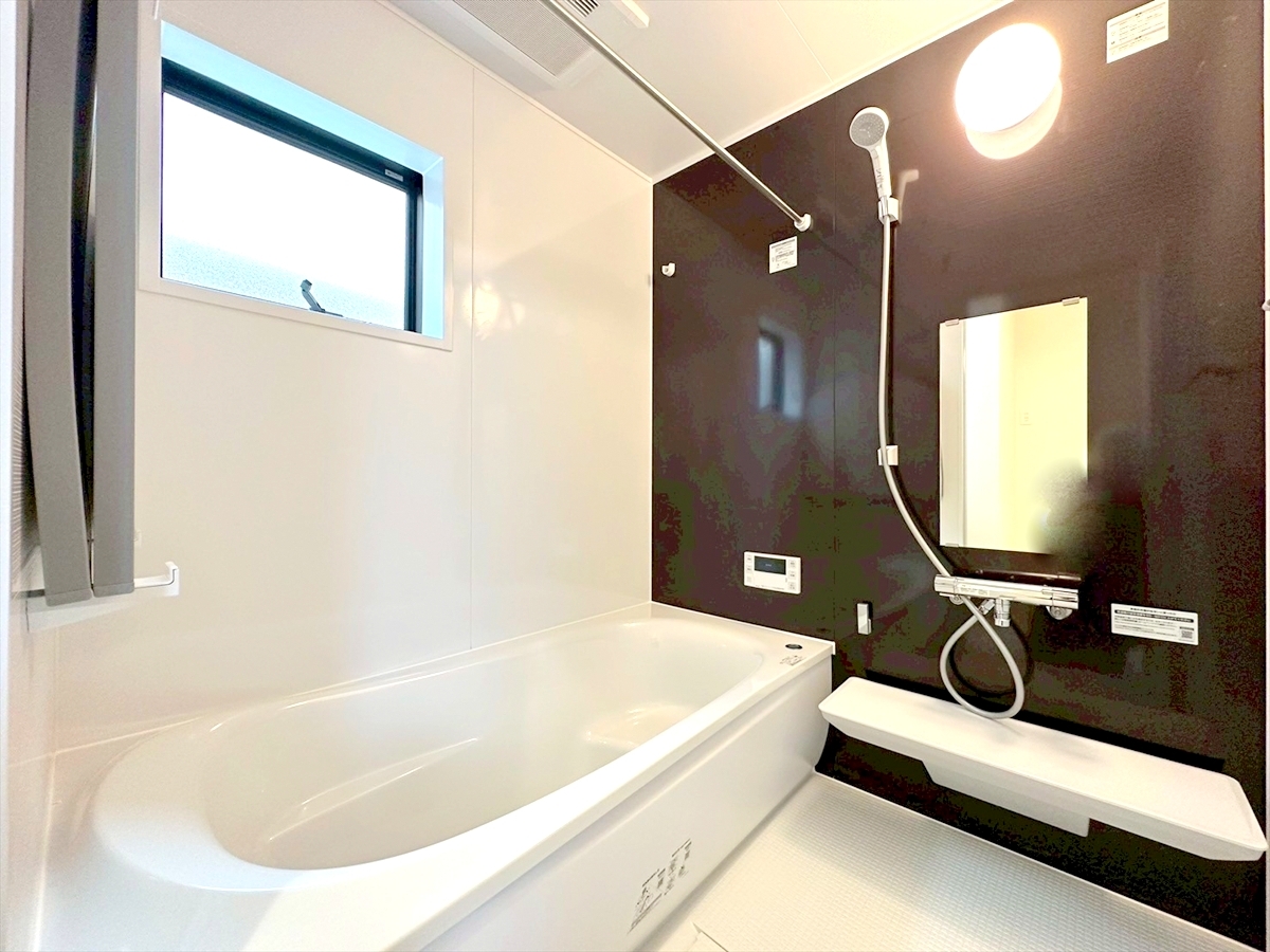 一日の疲れを癒すバスルーム。ゆったりとリラックスできる一坪タイプです。カビの発生を抑制し、雨の日の洗濯物の乾燥にも便利な浴室換気暖房乾燥機を標準装備しています。■調布市富士見町2 新築一戸建て■